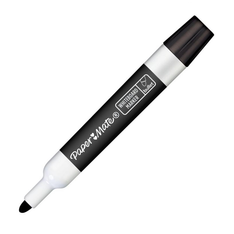 Popisovač na bílé tabule PAPER MATE Whiteboard s jemným kulatým hrotem je vhodný pro školní a domácí použití. Živý inkoust bez zápachu je rychleschnoucí, snadno stíratelný a poskytuje konzistentní kvalitu barev na tabulích, skle a většině neporézních povrchů. pro použití na tabule, sklo a většinu neporézních povrchů za sucha stíratelný inkoust bez zápachu jemný kulatý hrotšíře stopy 1mm